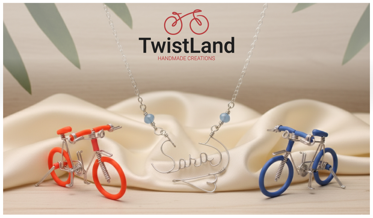 TwistLand se bavi kreiranjem unikatnih proizvoda od visokokvalitetne žice poput personalizovanih lančića, privezaka i dekorativnih biciklića. Svaki komad je ručno rađen i kreiran sa mnogo ljubavi i pažnje što ga čini idealnim za poklon voljenoj osobi, unikatan detalj u vašem domu ili jedinstven pečat vašem stilu.